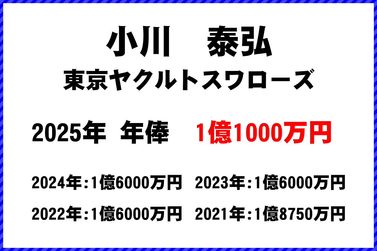 HOME> プロ野球 チーム別年俸ランキング> 東京ヤクルトスワローズ> 小川泰弘