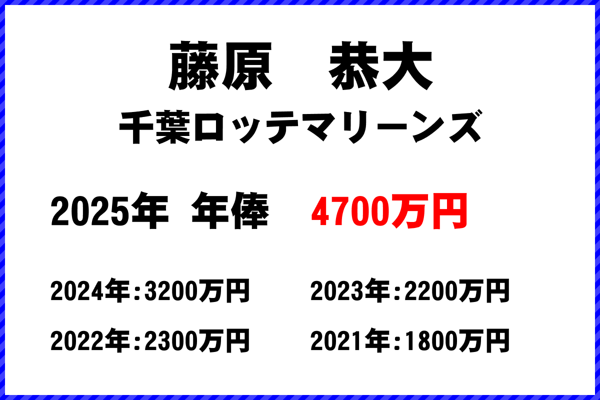2025年 千葉ロッテマリーンズ所属 藤原恭大選手の年俸は4700万円です。