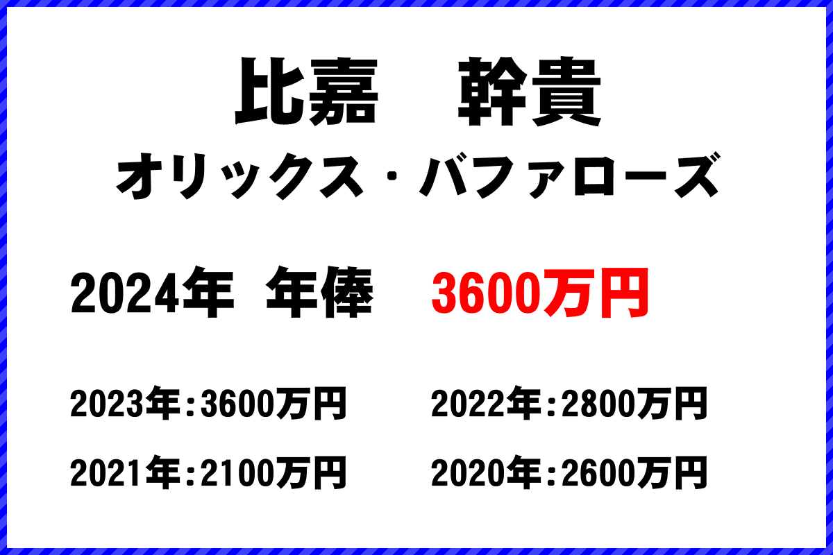 | 2024年 | 41歳 | 3600万円 | 35 | オリックス |